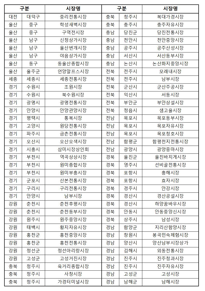 온누리상품권 환급 참여시장 목록