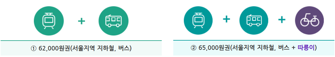 - 이용범위 : 서울지역 지하철, 서울시 면허 시내,마을버스, 따릉이