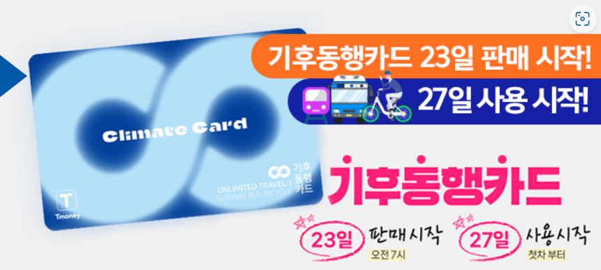 기후동행카드는 1회 요금 충전으로 30일간 대중교통(버스, 지하철), 따릉이를 무제한으로 이용할 수 있는 대중교통 통합 정기권입니다.